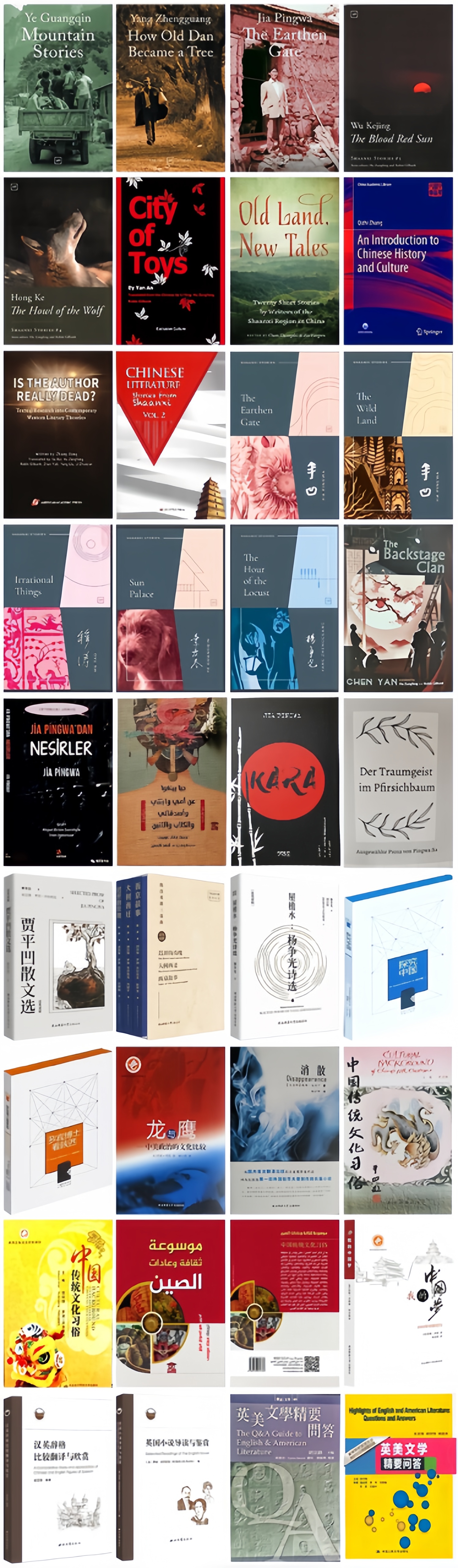 英汉双语作品有:《贾平凹散文选》《英诗导论与选读》《英美文学精要问答》《欧洲文化精要问答》《中国传统文化习俗》、陈彦戏剧作品“西京三部曲”《西京故事》《大树西迁》《迟开的玫瑰》、贾平凹诗选《空白》、《穆涛散文选》、杨争光诗选《屋檐水》等10多部。