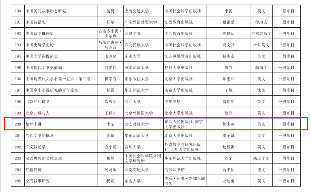 6月27日,全国哲学社会科学工作办公室公布了2023-2024年度国家社科基金中华学术外译项目立项名单,我会理事西安财经大学外国语学院李莹副教授申报的《楚辞十讲》项目获批立项。