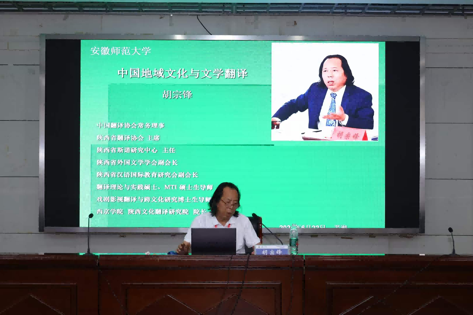 2024年6月22日,安徽省皖南地区翻译工作交流研讨会在安徽师范大学举行。陕西省翻译协会主席胡宗锋教授,陕西省翻译协会海外理事罗宾·吉尔班克博士应邀出席。胡宗锋教授做大会交流发言:中国地域文化和文学的译介——以文学陕军为个案。