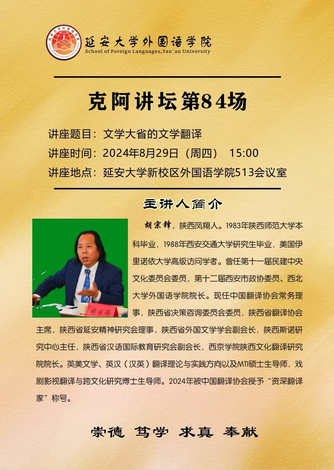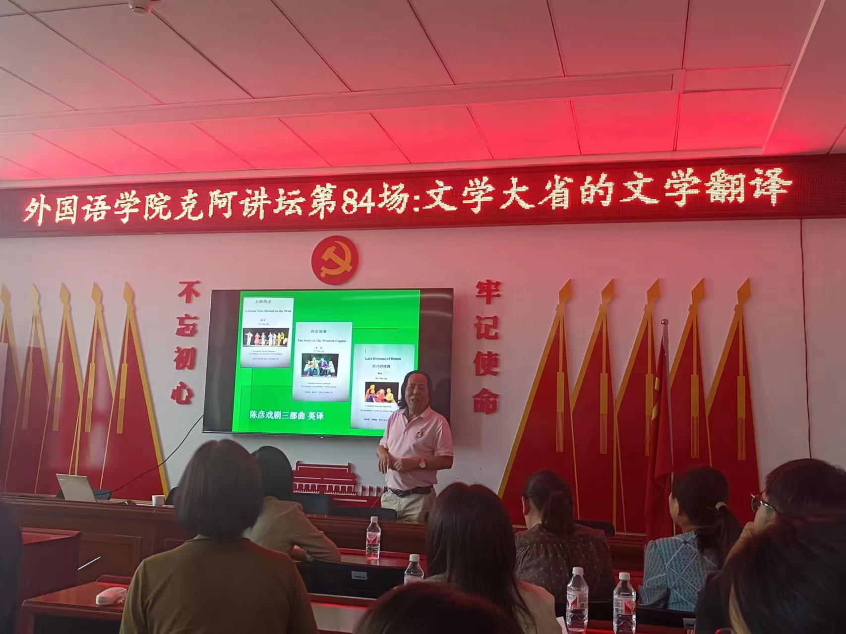 胡宗锋教授为延安大学外国语学院的师生做题为“文学大省的文学翻译”的学术讲座。