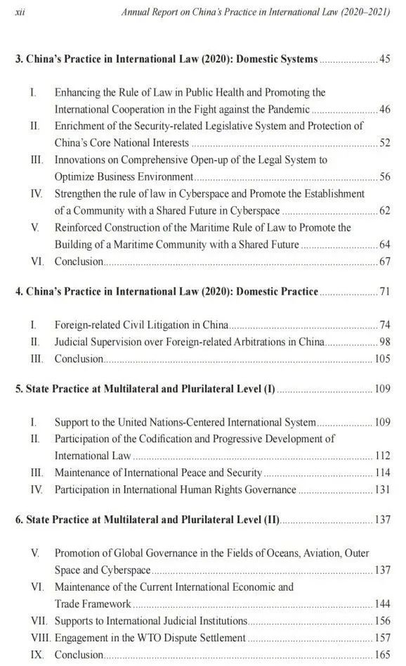 本书是教育部重点研究基地武汉大学国际法研究所和国家高端智库武汉大学国际法治研究院策划编撰的中国国际法年度实践专题研究系列报告之一的英文版,由国际法专家肖永平和冯洁菡担任主编,包括总报告、国家实践篇、理论贡献篇和附录四个部分11篇报告组成,综合分析和评价2020年中国在国际法治的各个重要领域所表明的理念、坚持的原则和立场,以及采取的具体行动,系统展示了中国对促进国际法治发展作出的重要贡献,有助于提高中国践行国际法治的透明度,有助于世界各国和社会各界客观认识和评价中国在促进国际法治发展的事实。