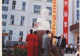 ◆ 世界第一座海伦·斯诺雕像在西安落成。9月21日是海伦·斯诺的诞辰纪念日,我会邀请柴泽民、凌青、钱永年等老一辈外交家及35人美国海伦斯诺代表团前来西安参加第一座海伦·斯诺雕像落成典礼和第一所海伦·斯诺学校的开学典礼。西安市委书记崔林涛与海伦的侄女谢莉尔共同为校牌揭幕。谢莉尔丈夫毕绍夫为雕像揭幕。雕像用白色大理石雕成,高1.8米,底座高2米,用红色花岗岩贴面,是陕西雕塑家刘逢刚的作品。(附图)贾治邦会见并宴请了谢莉尔夫妇及所有来访的海伦亲属。