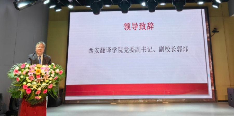 西安翻译学院党委副书记、副校长郭炜致欢迎辞,欢迎各位专家和同学莅临西安翻译学院,对能够有机会承办这次省级赛事表示感谢,并向来宾介绍了西安翻译学院建校历程及近年来学科建设成果。他表示,陕西省大学生日语翻译竞赛为我省高校之间的交流提供了一个很好的平台,在增进学生们外语实践能力的同时,促进了兄弟院校之间的友谊和合作。这对于促进陕西省高校之间的交流和合作有着积极的意义。